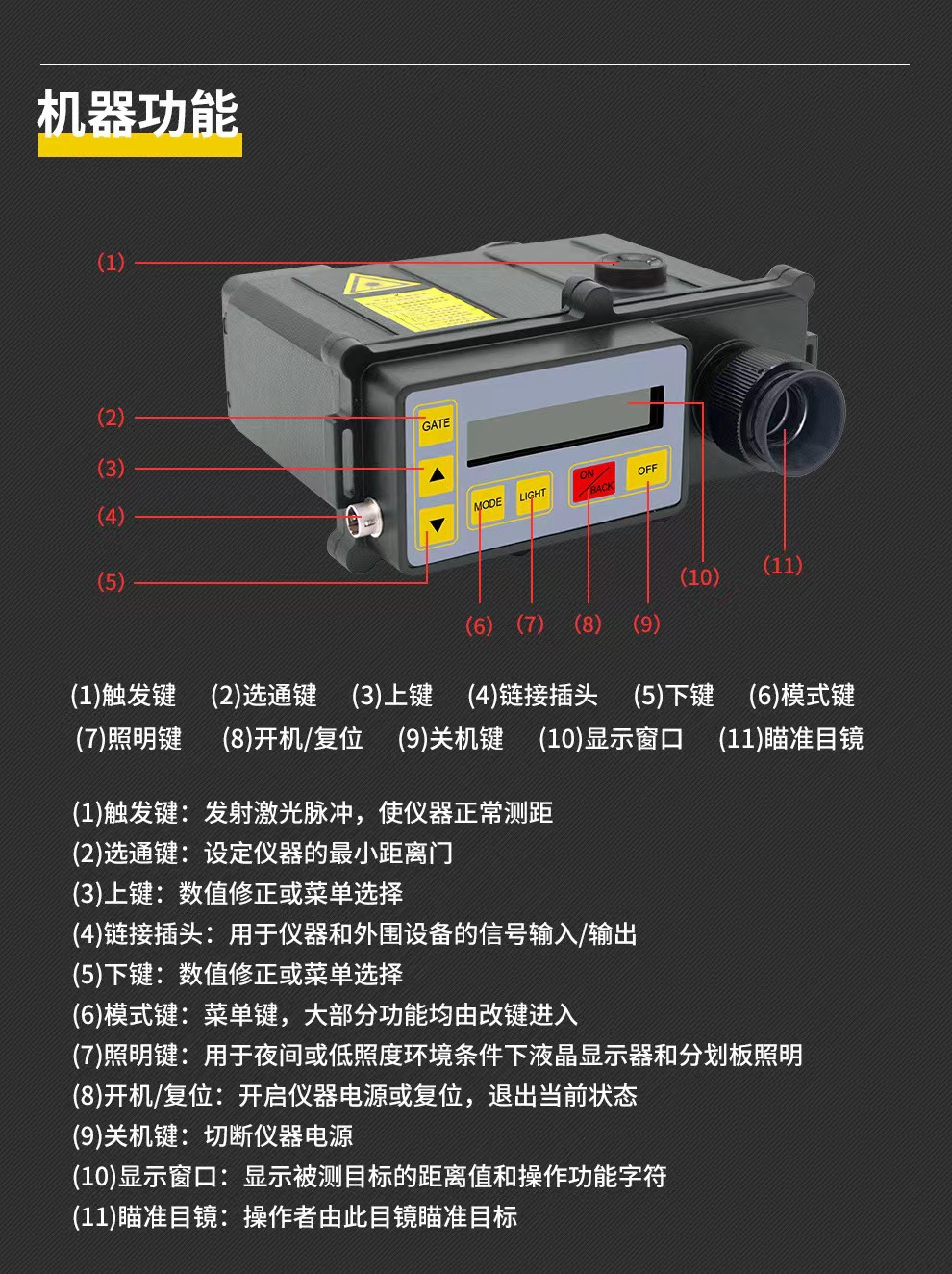 测距精度0.5米;