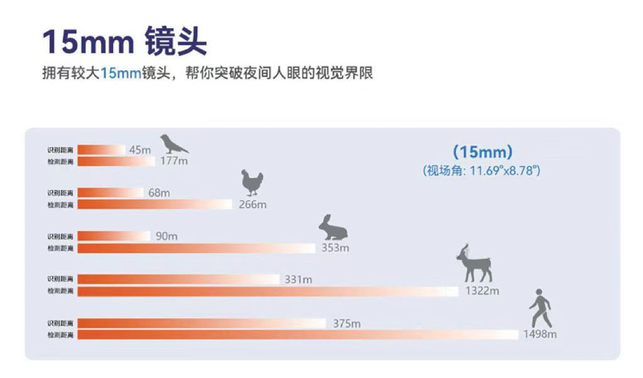 探测距离:人(1.7×0.5)m 1498m